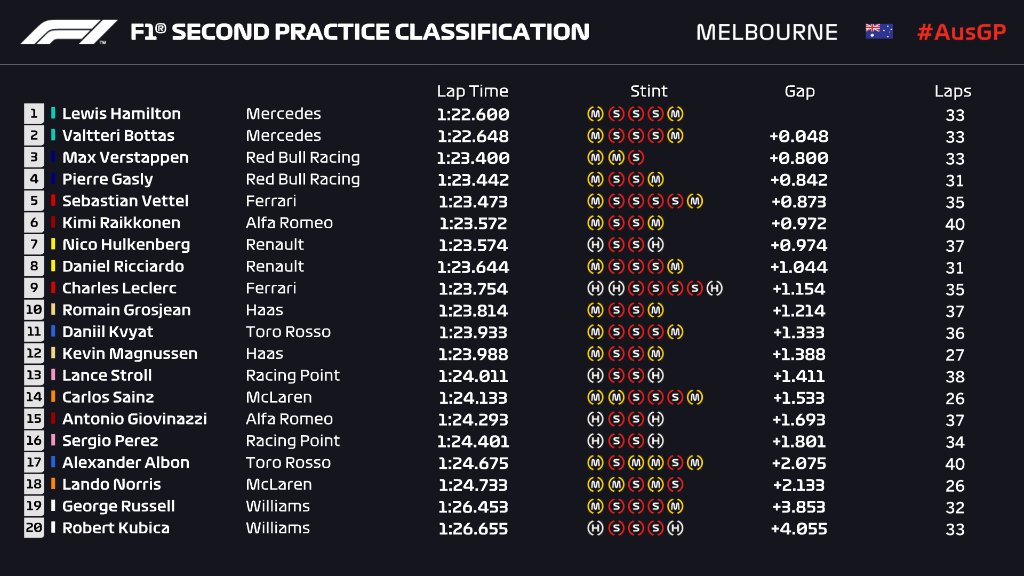 Lezajlott a szezon első két szabadedzése a mai napon Ausztráliában. Úgy tűnik továbbra is számítani lehet a Mercedes nagy főlénnyére, ám nehéz még bármit is megjósolni a mai nap eredményei alapján. Kimi mind a kettő edzésen a hatodik helyen zárt. Eddig ígéretesnek tűnik, meglátjuk hogyan alakul a hétvége további része.